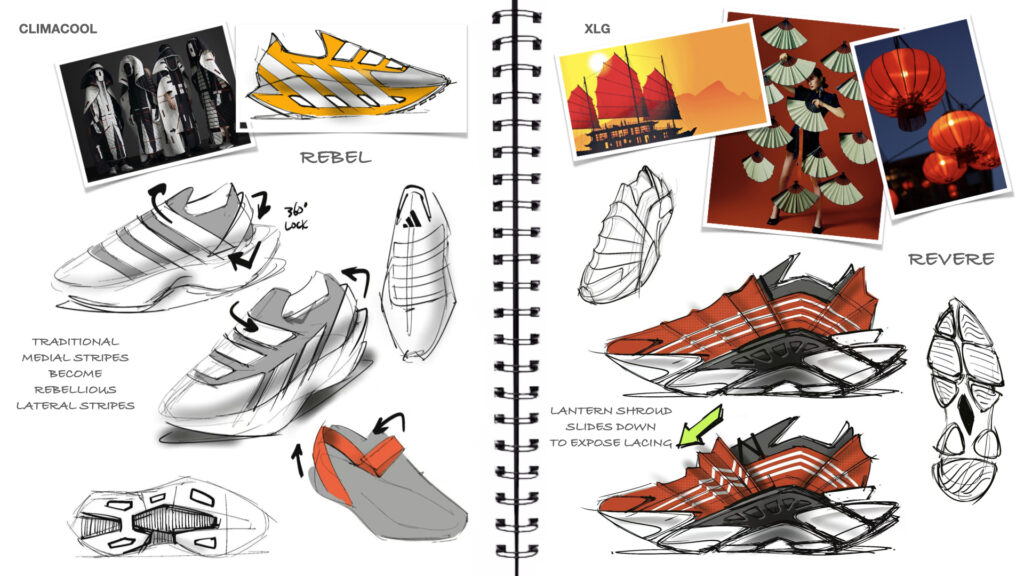 – Consideration of textures and graphic applications that further assign significance to the shoe.